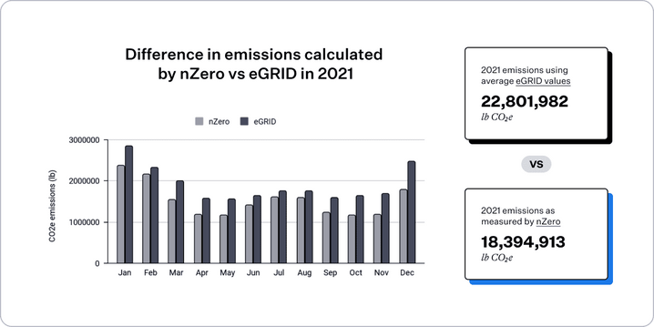 nZero recently helped one of our commercial real estate customers in Chicago measure its annual carbon footprint using nZero’s near-real time technology to calculate a hypothetical carbon tax scenario. We compared one of their building’s footprints to a footprint calculated using the EPA’s eGRID annual average emission factor – which are less accurate and out of date.