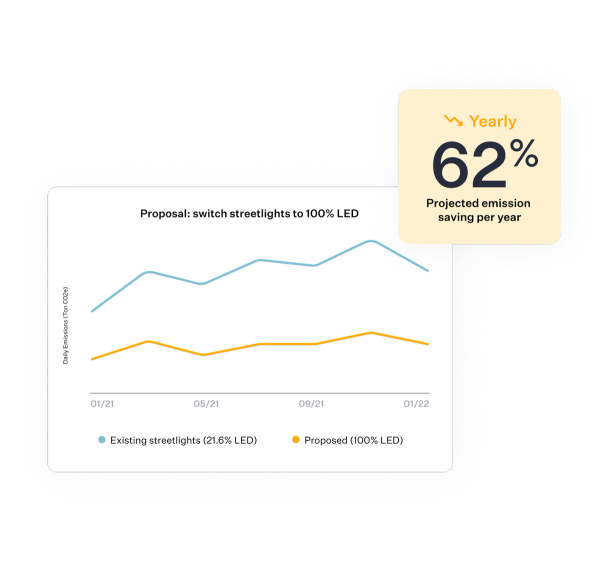 Our automated insights engine informs you where to invest and how to reduce your carbon impact for the best ROI.